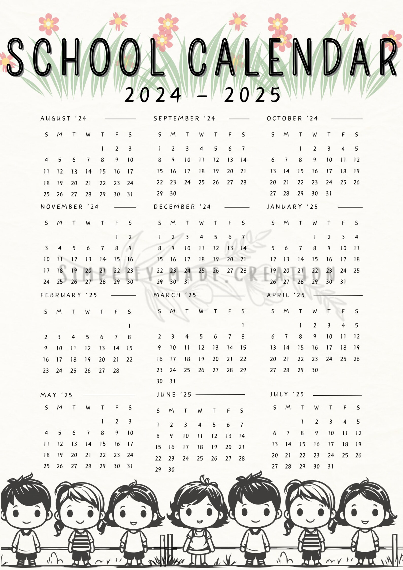 2024 2025 School Calendar and Monthly Planner Instant Download PDF