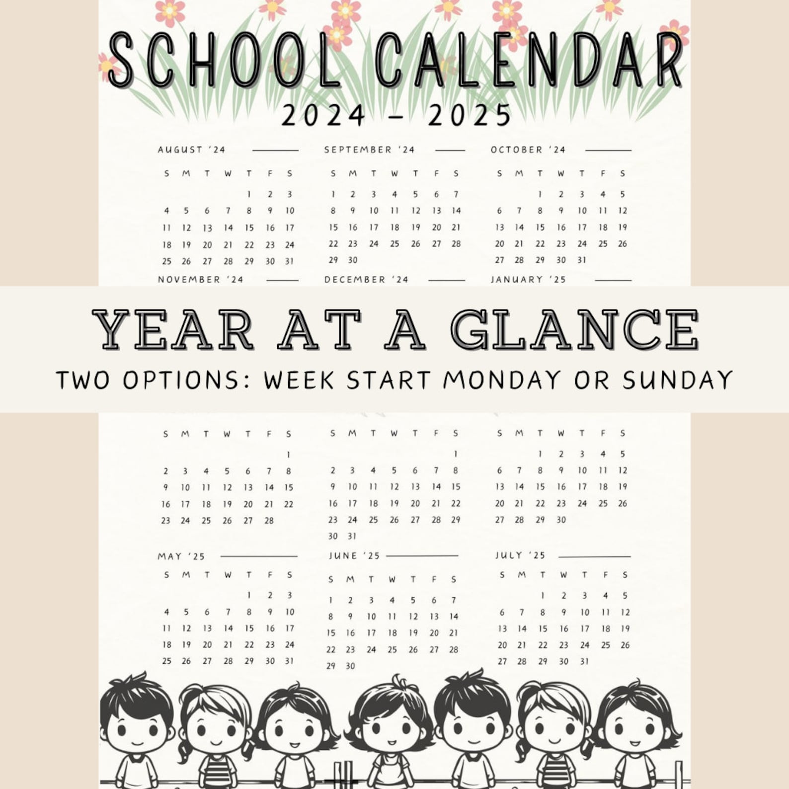 2024 2025 School Calendar and Monthly Planner Instant Download PDF Week