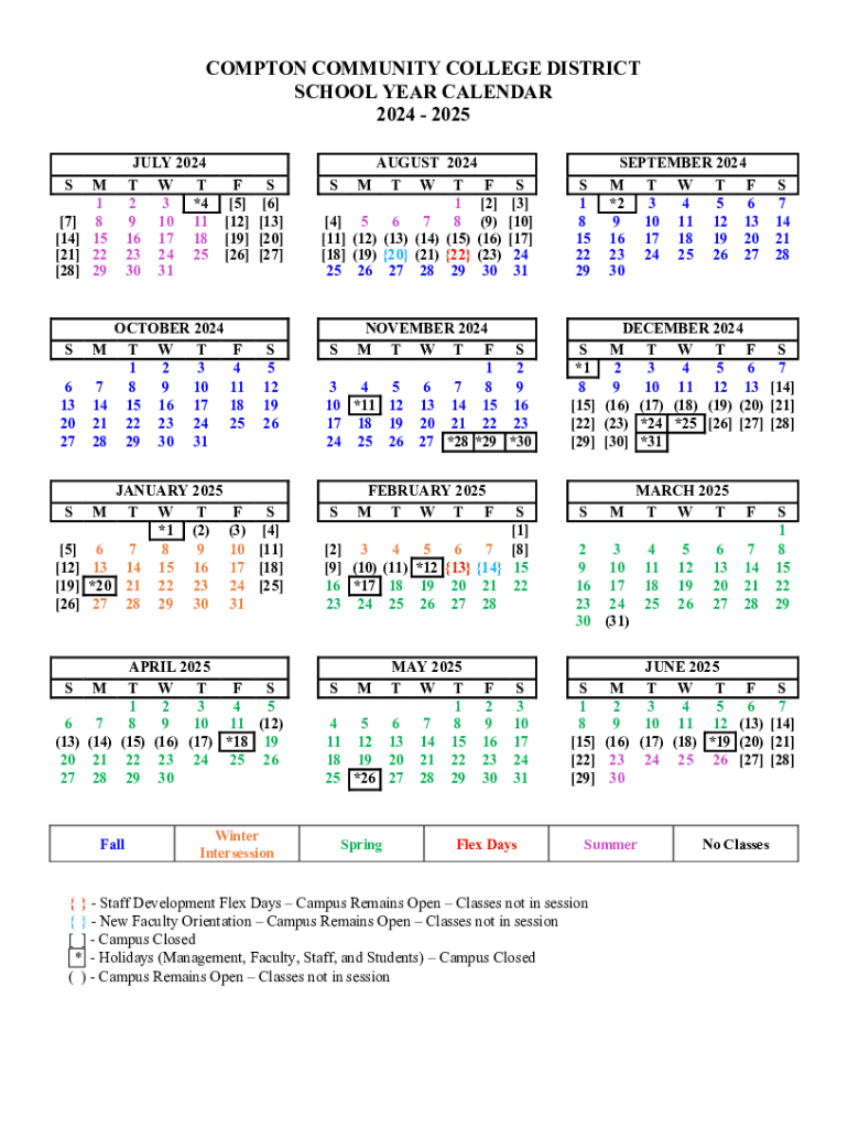 Fillable Online School Calendars 2024/2025 Free Printable PDF