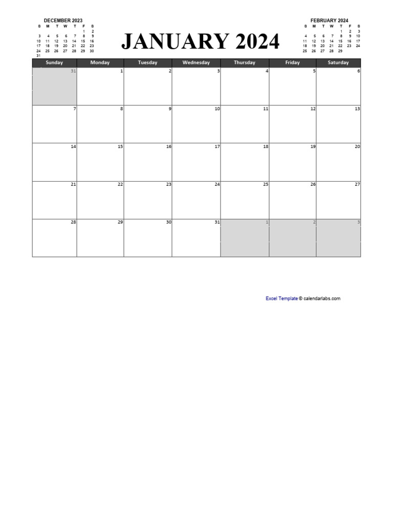 Monthly 2024 Excel Calendar Planner Free Printable Templates
