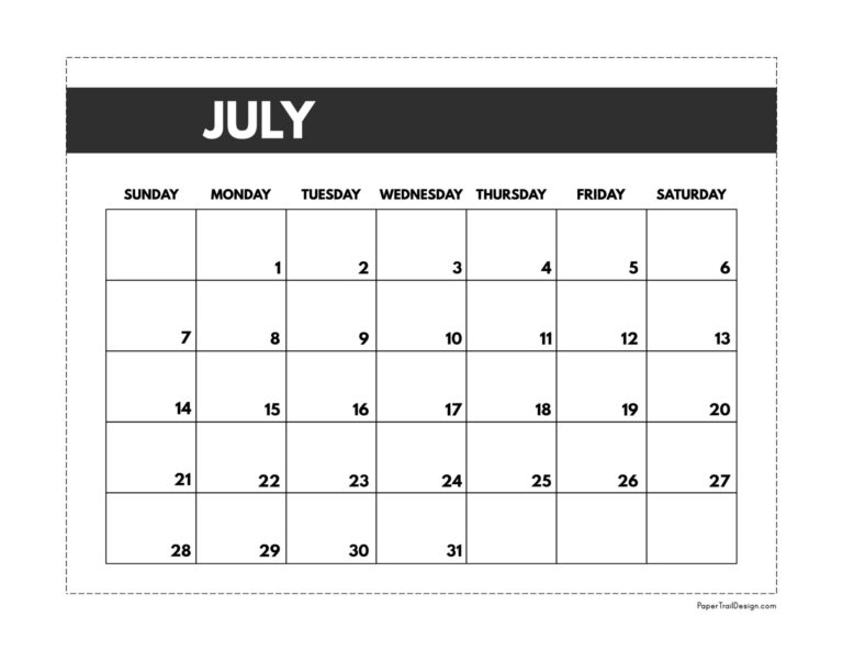 12 Free July 2025 Calendar Printable PRINT ABLE