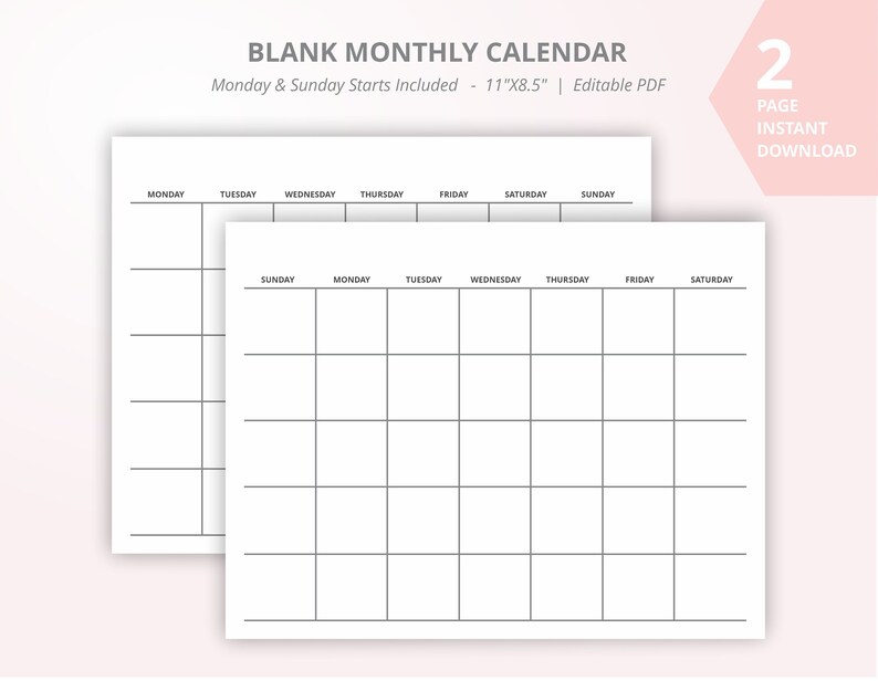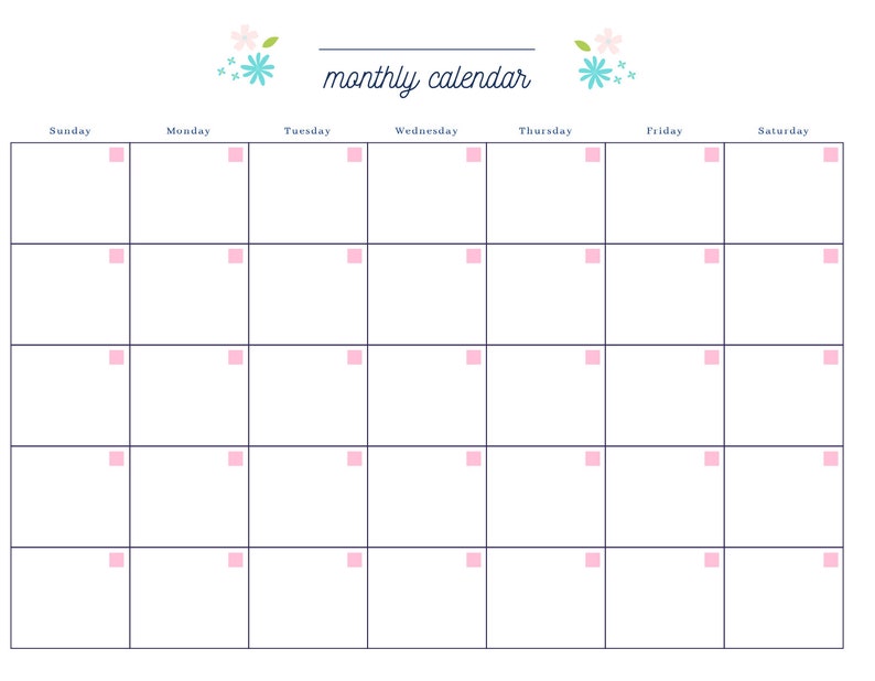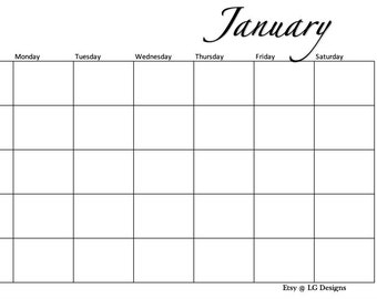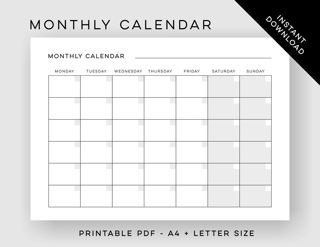 Printable Blank Calendar Printable Blank Monthly Calendar Etsy