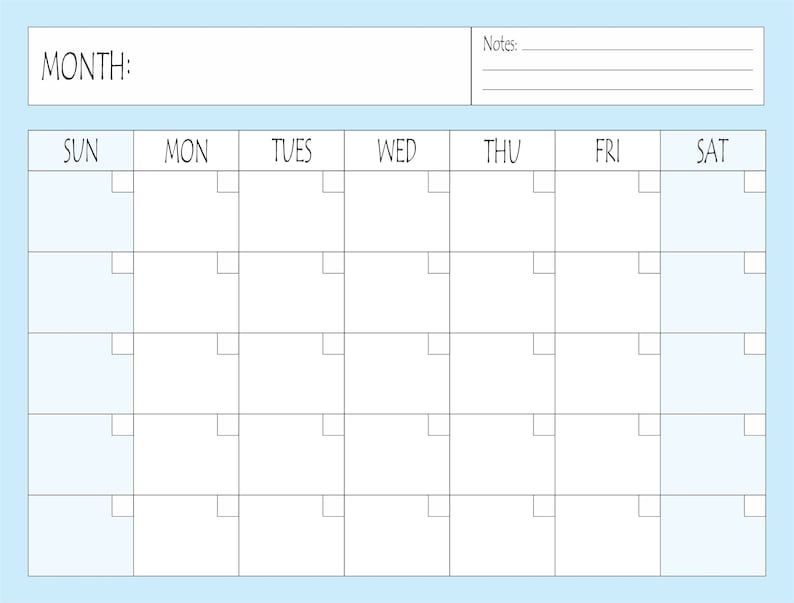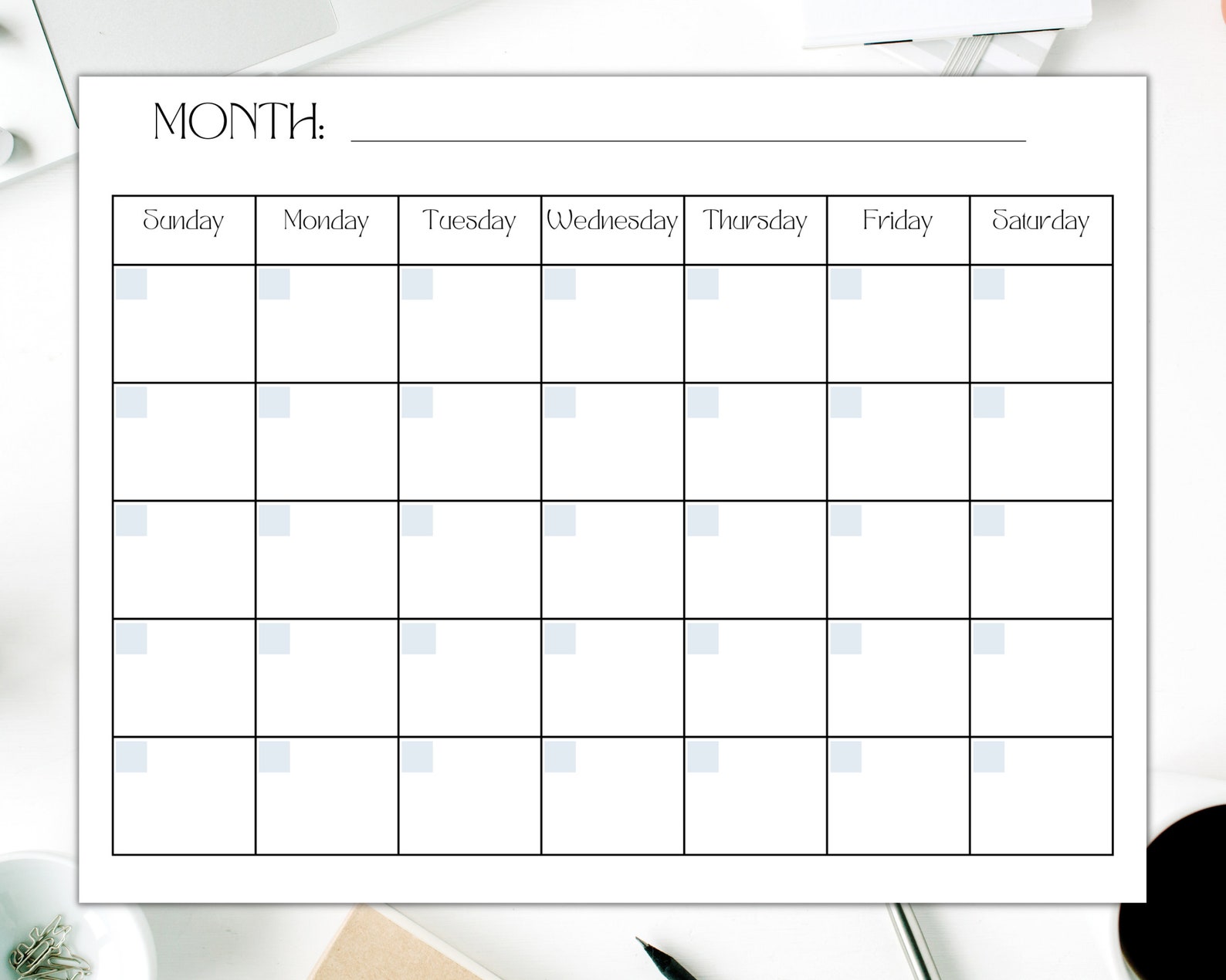 Printable Monthly Calendar Blank Template Fill In Month and Etsy
