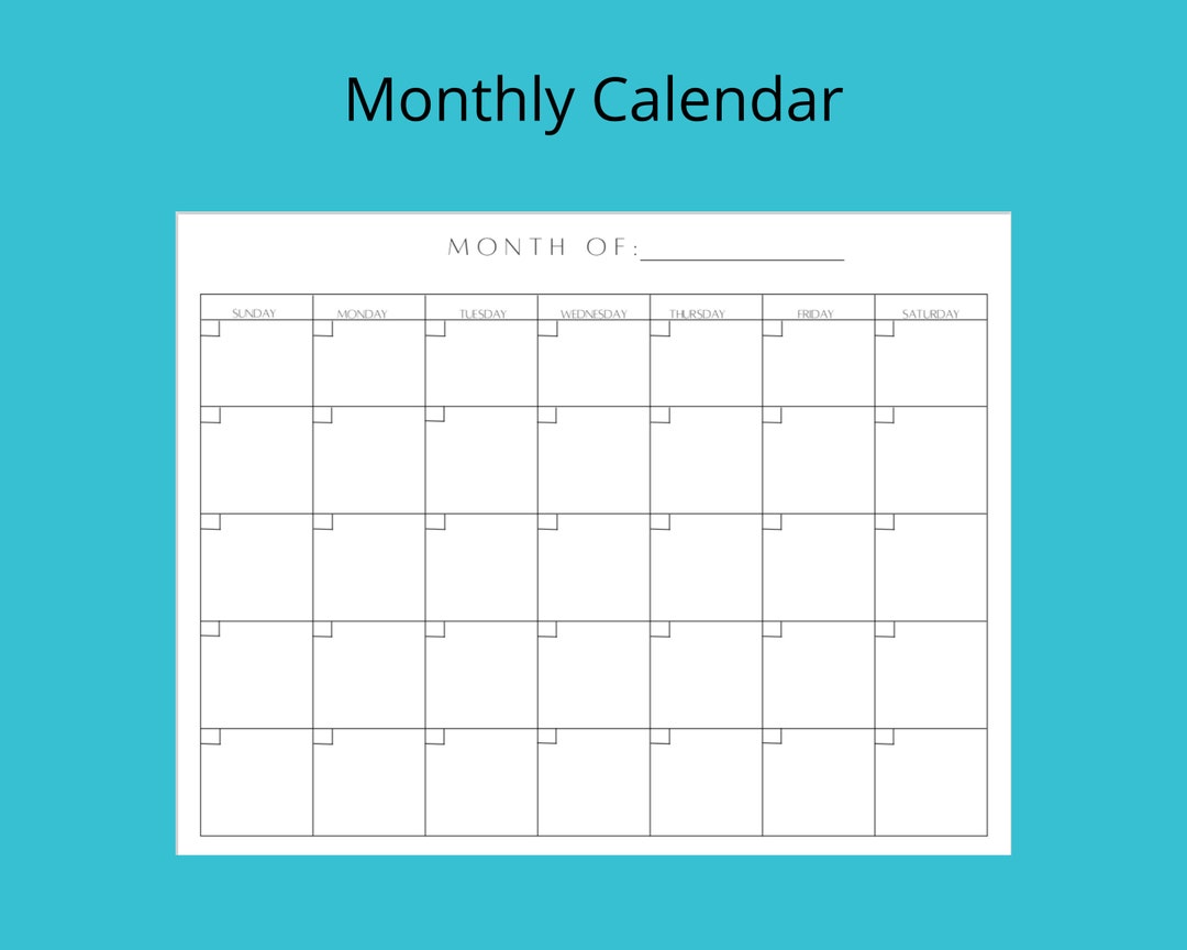 Blank Monthly Calendar Printable Digital Monthly Planner Minimalist