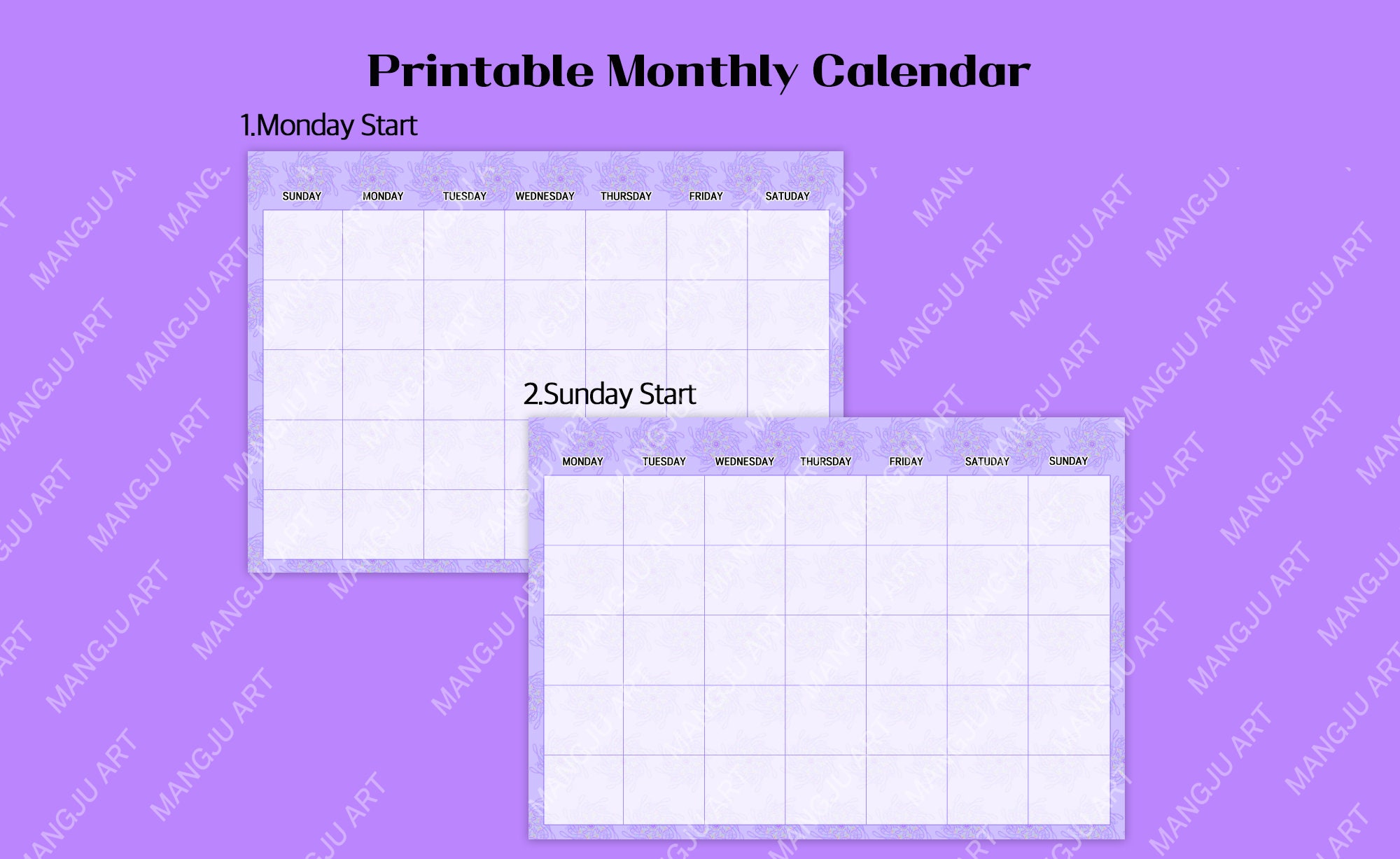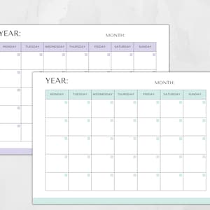 Blank Undated Monthly Calendar Planner Printable Template Editable