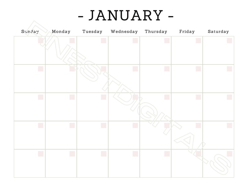 Blank Calendar Printable Instant Download Goodnotes Friendly Etsy
