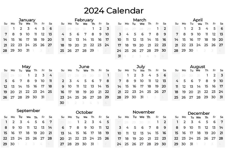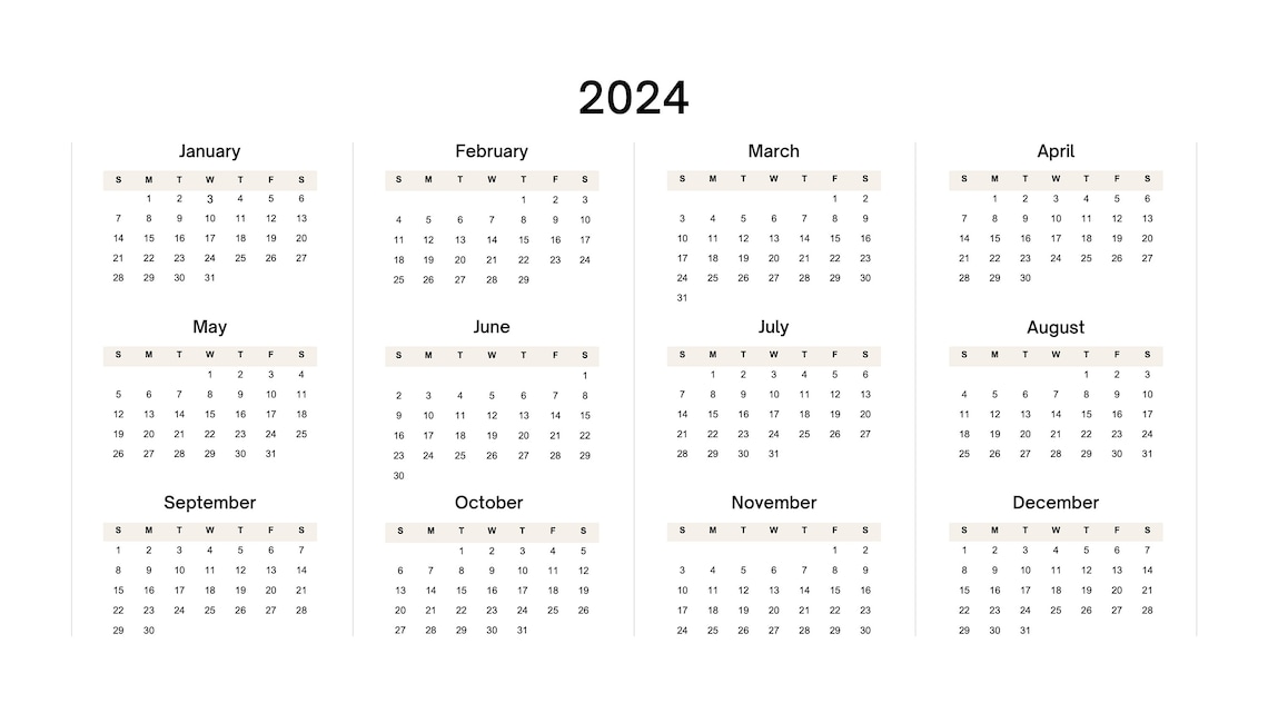 2024 Yearly Calendar Etsy