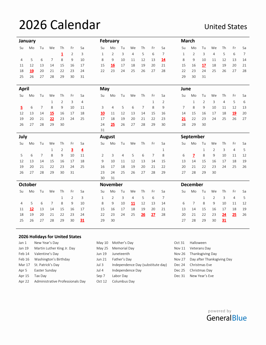 Here are some of the images for 2026 Calendar With Holidays that we found in our website database.