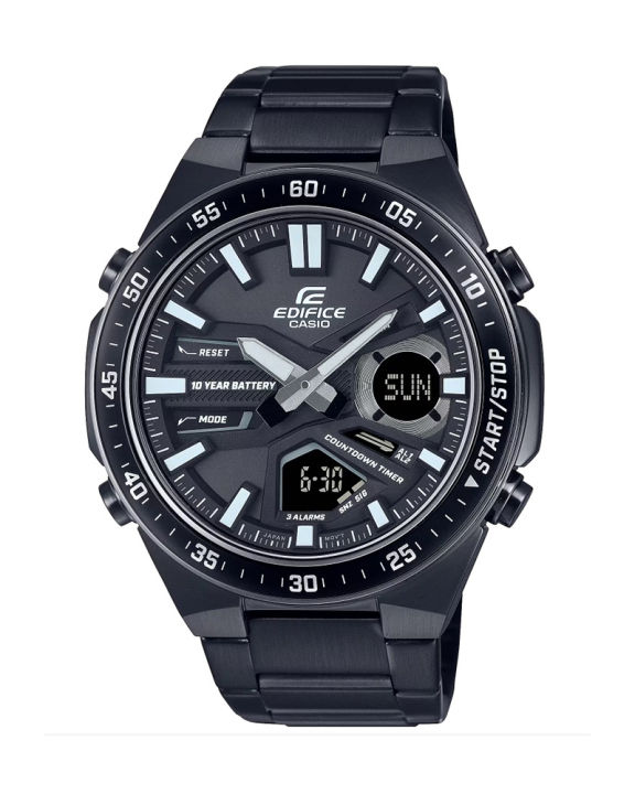 Casio Edifice Mens Black Ion Plated Carbon Case Analog Digital