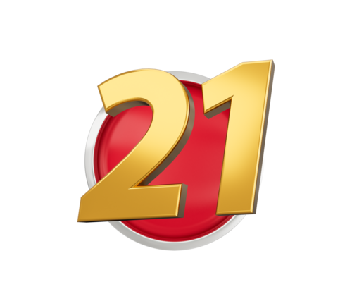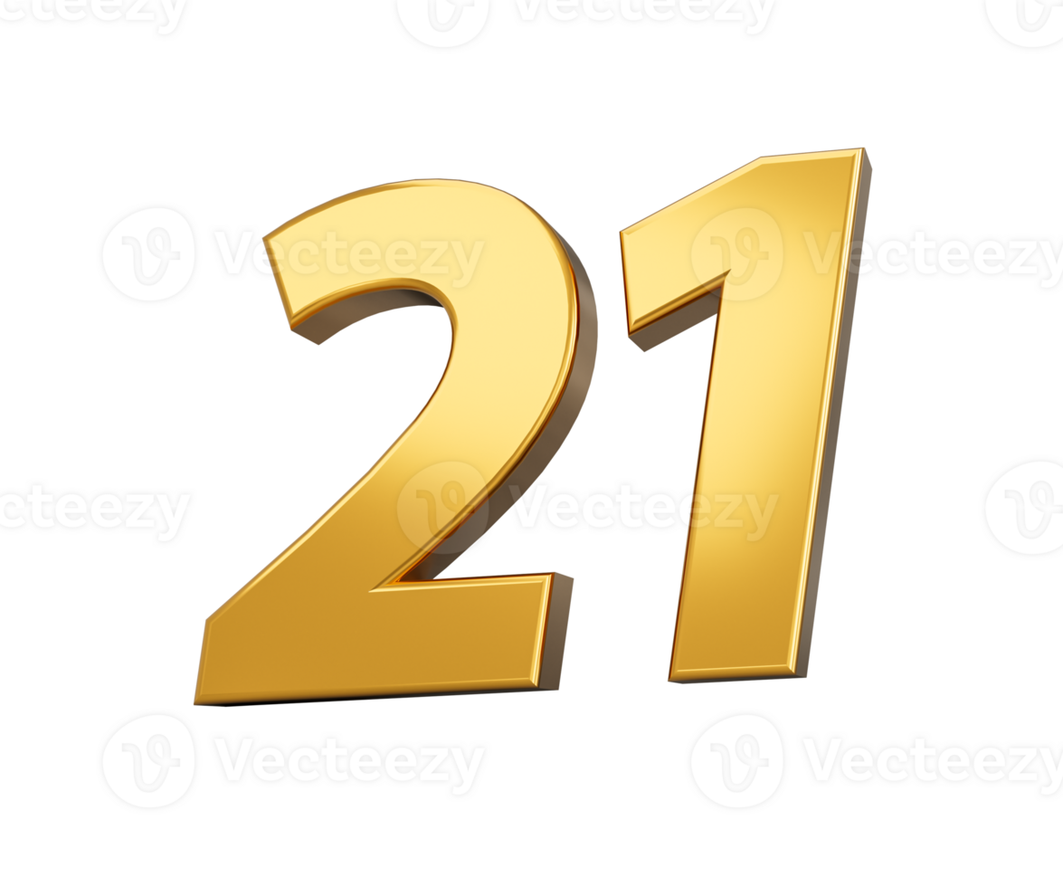Gold number 21 Twenty one shiny 3d number 21 made of gold 3d