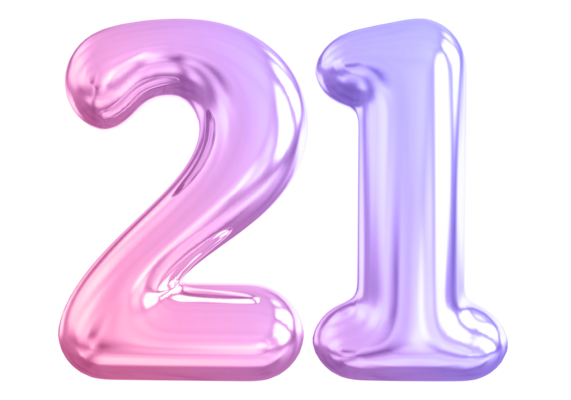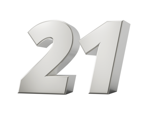 3D 21 number font alphabet White 3D Number 21 with yellow background
