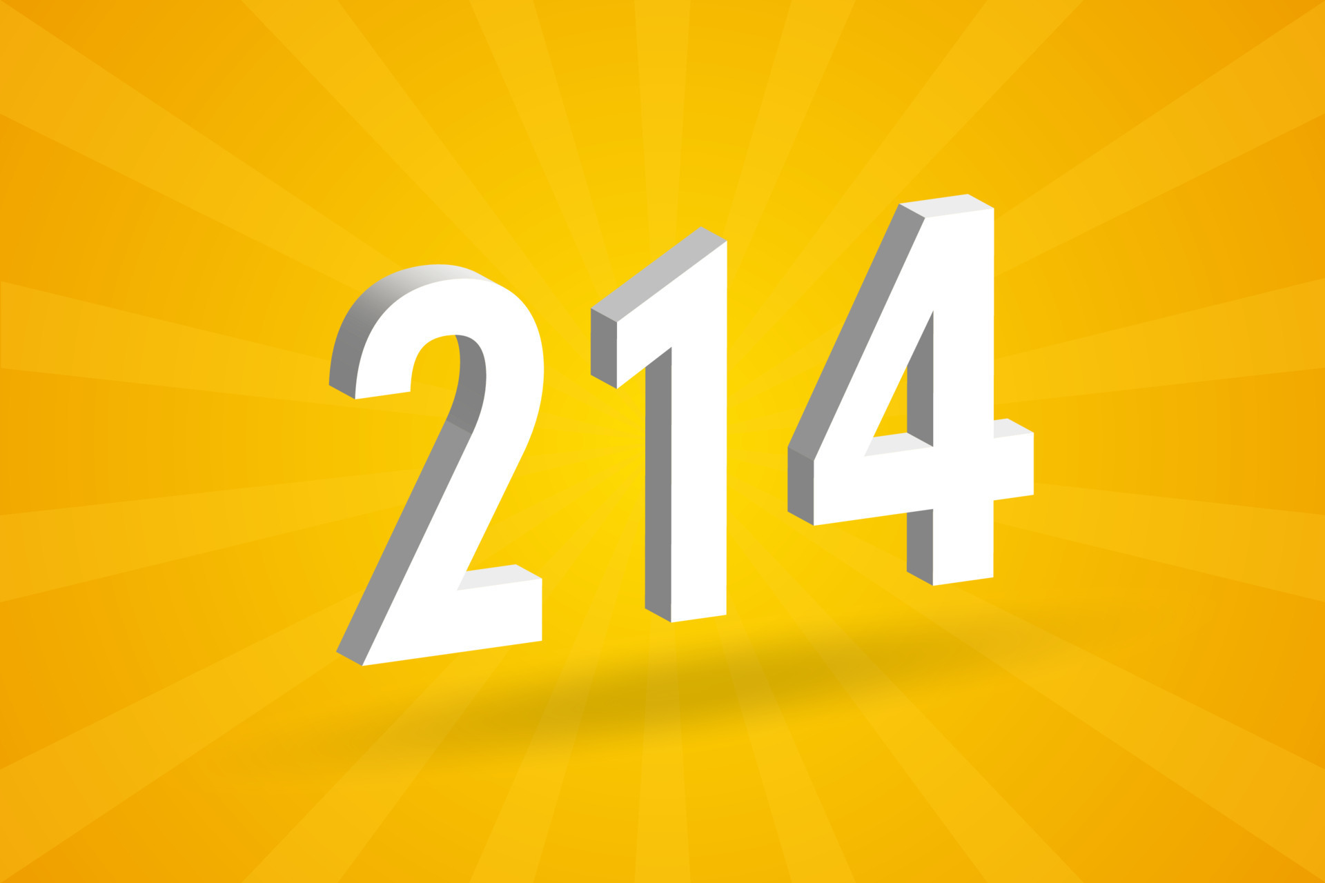 3D 214 number font alphabet White 3D Number 214 with yellow background