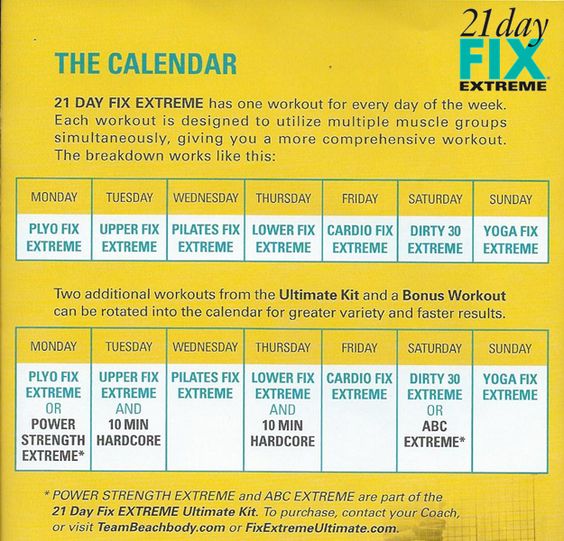 21 Day Fix Extreme Workout Calendar
