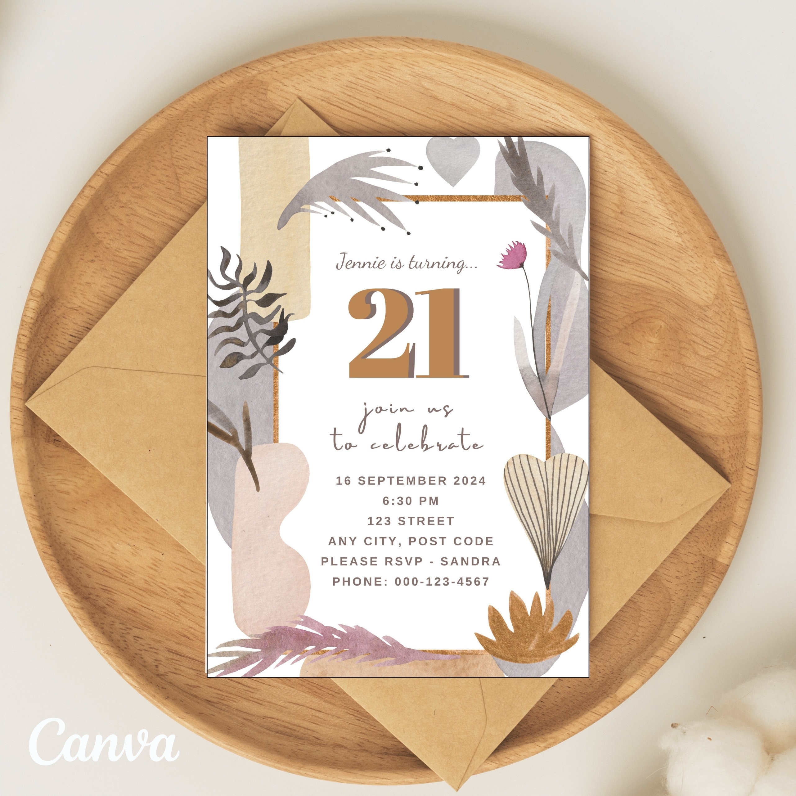 Page 2 Free custom printable 21st birthday invitation templates Canva