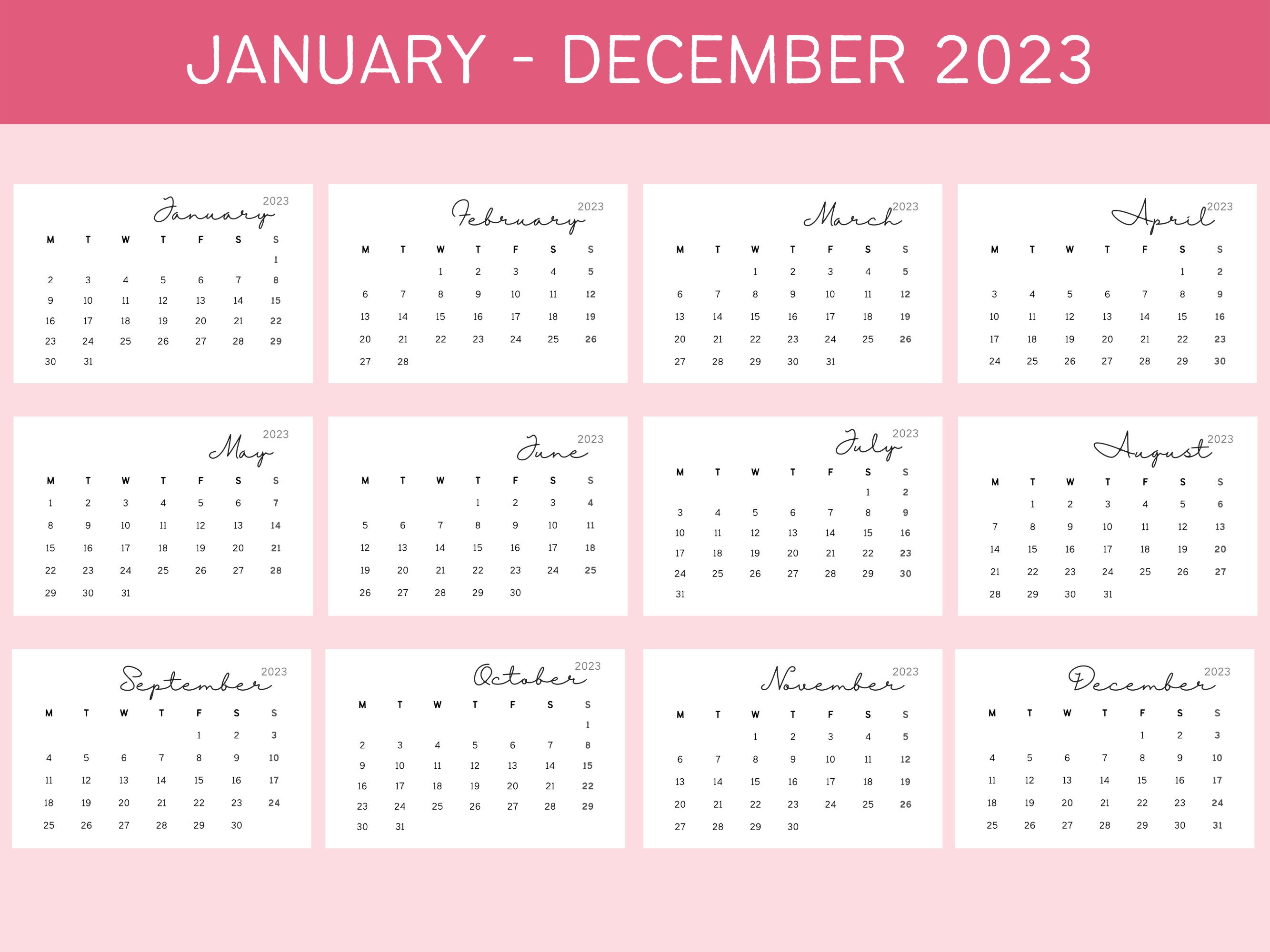 Printable Yearly Calendar 2023 Starting Monday YearlyCalendars net