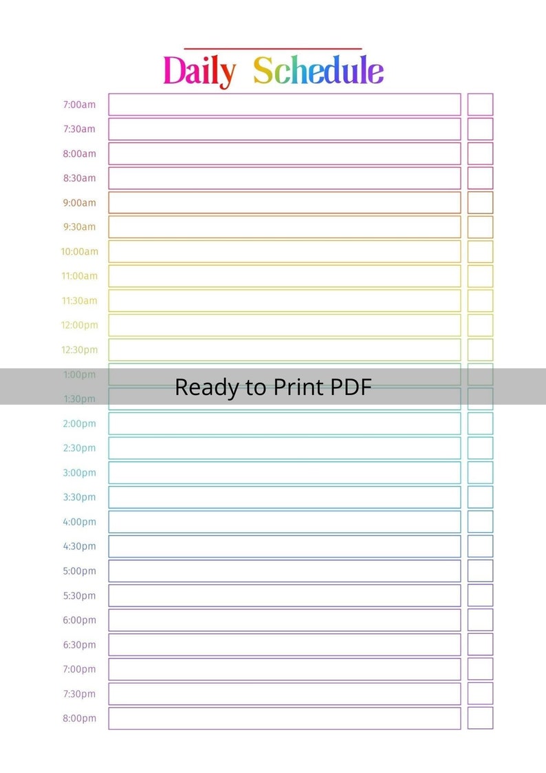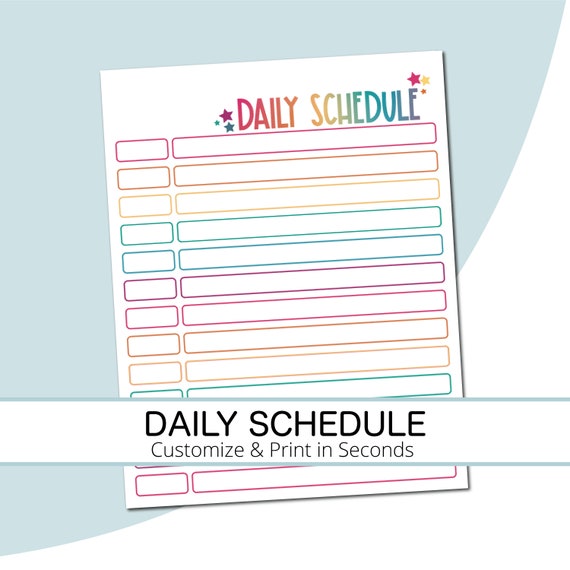 Daily Schedule Template Printable Kids Schedule Kids Etsy