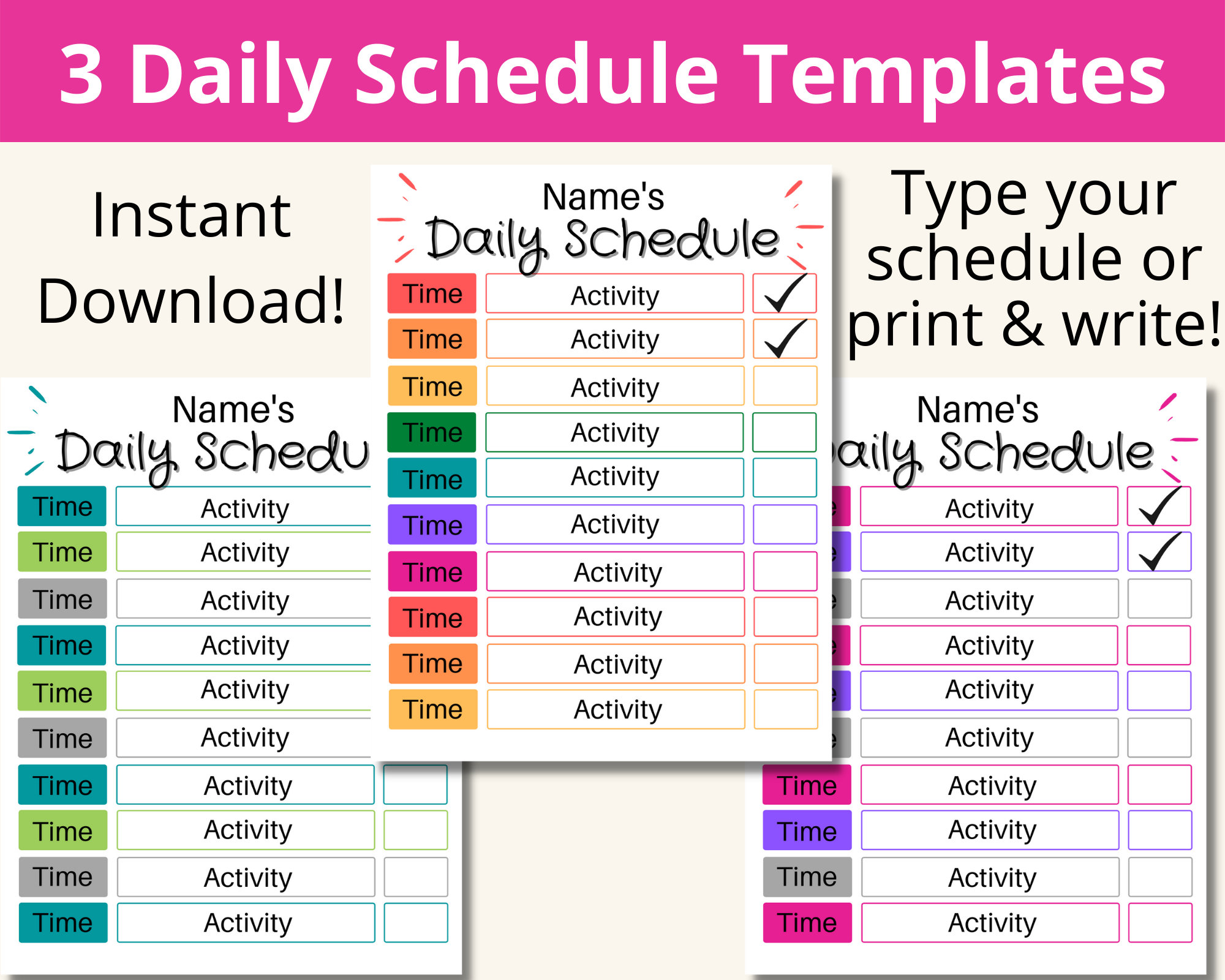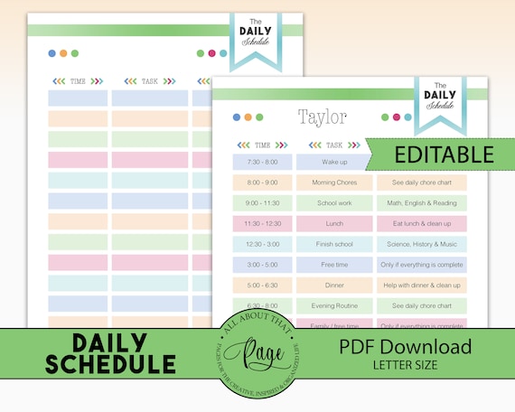 Editable Daily Schedule Template for Kids Printable Etsy