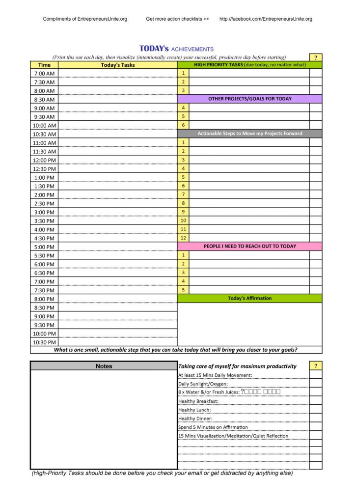 24 Hour Daily Schedule Template