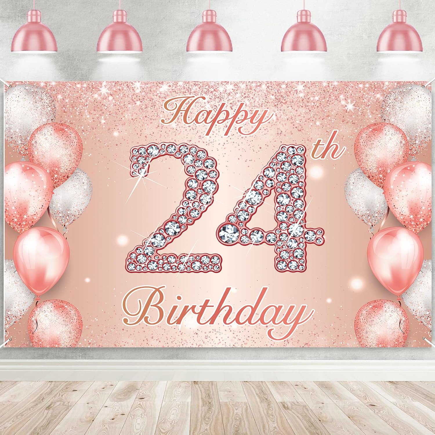 Amazon com: Happy 24th Birthday Rose Gold Banner Cheers to 24 Years Old