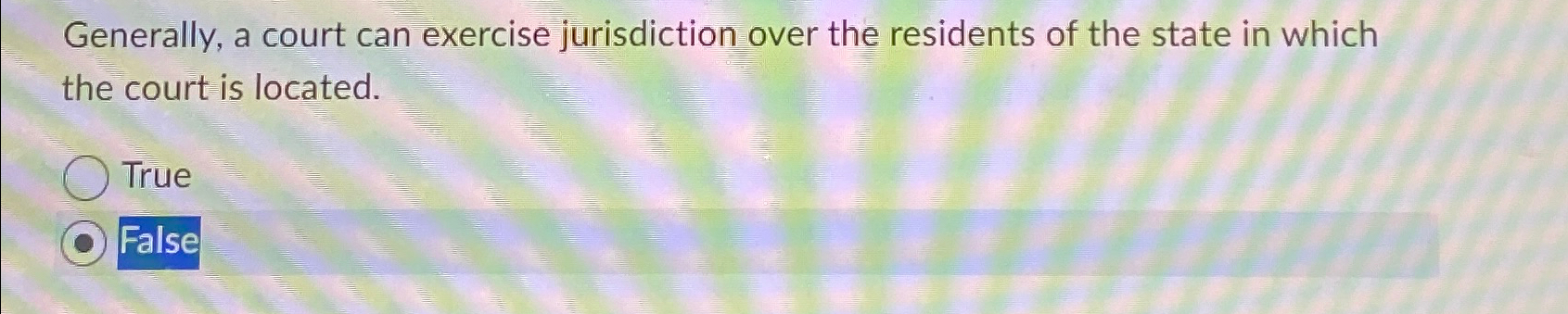 Solved Generally a court can exercise jurisdiction over the Chegg com
