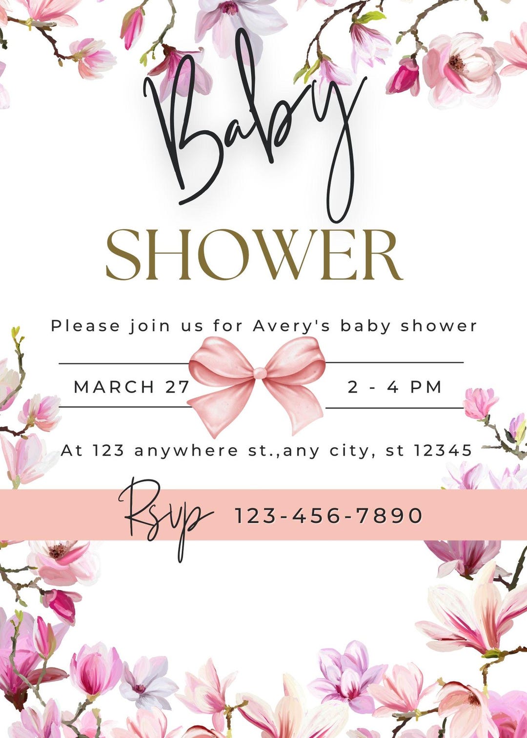 Elegant Pink Magnolia Baby Girl Shower Invitation Etsy