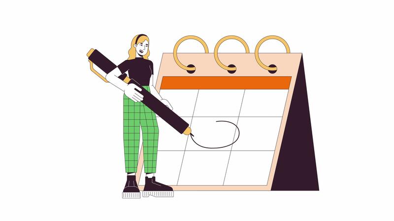 Calendar woman on moving out day 2D linear cartoon character Stock