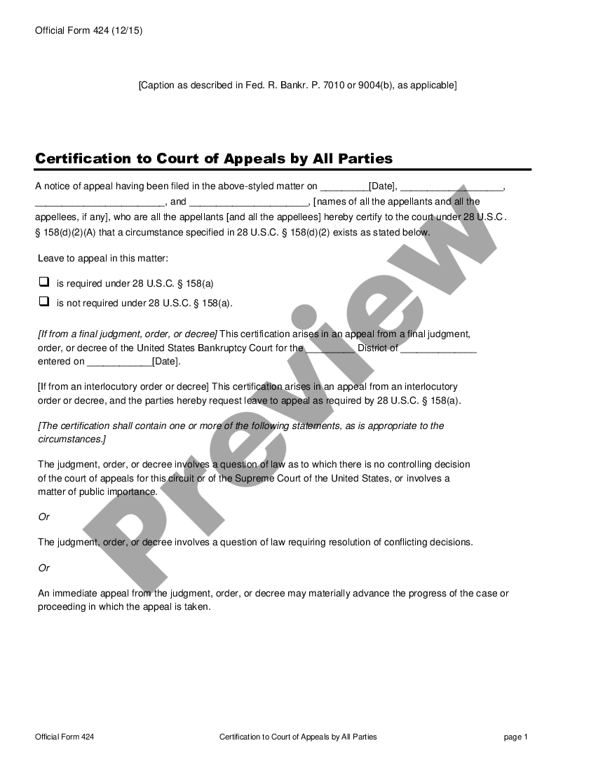 Certification to Court of Appeals US Legal Forms