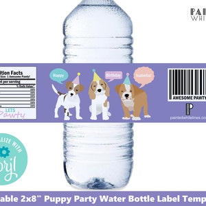 Puppy Party Water Bottle Wraps Template Printable Editable Label