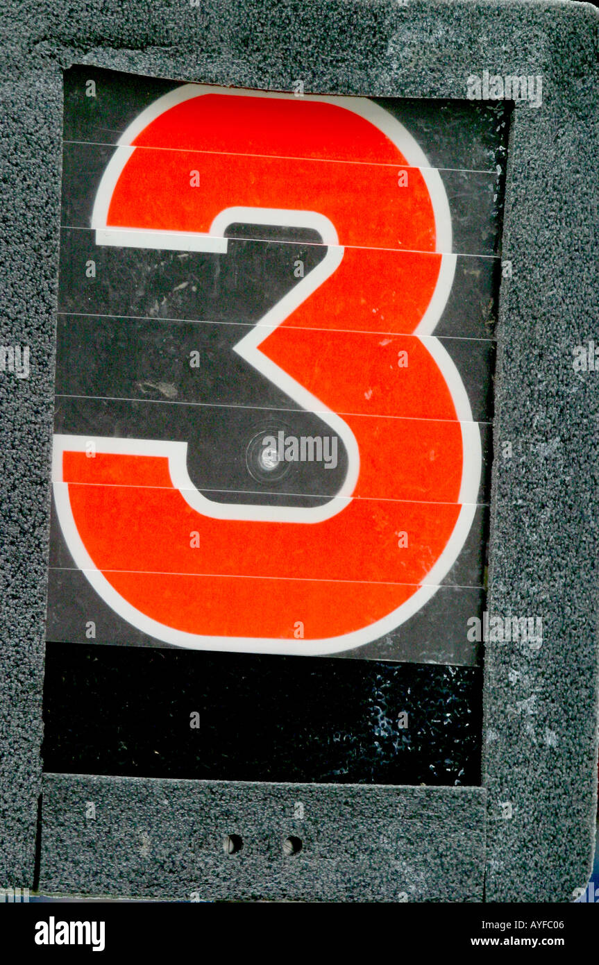 3 Three Chevron Number w colorful rainbow pattern and grey border Stock