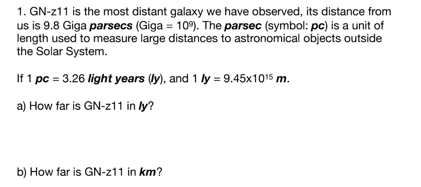 Solved 1 GN z11 is the most distant galaxy we have Chegg com