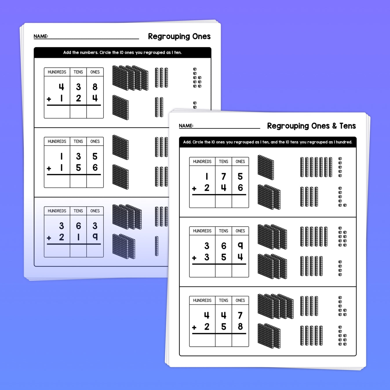 3 Digit Addition with Regrouping Worksheets (Printable PDF) That