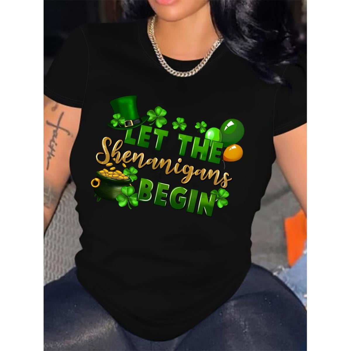 1pc St Patrick #39 S Day Women #39 S T Shirt 100% Polyester Crew Neck Long