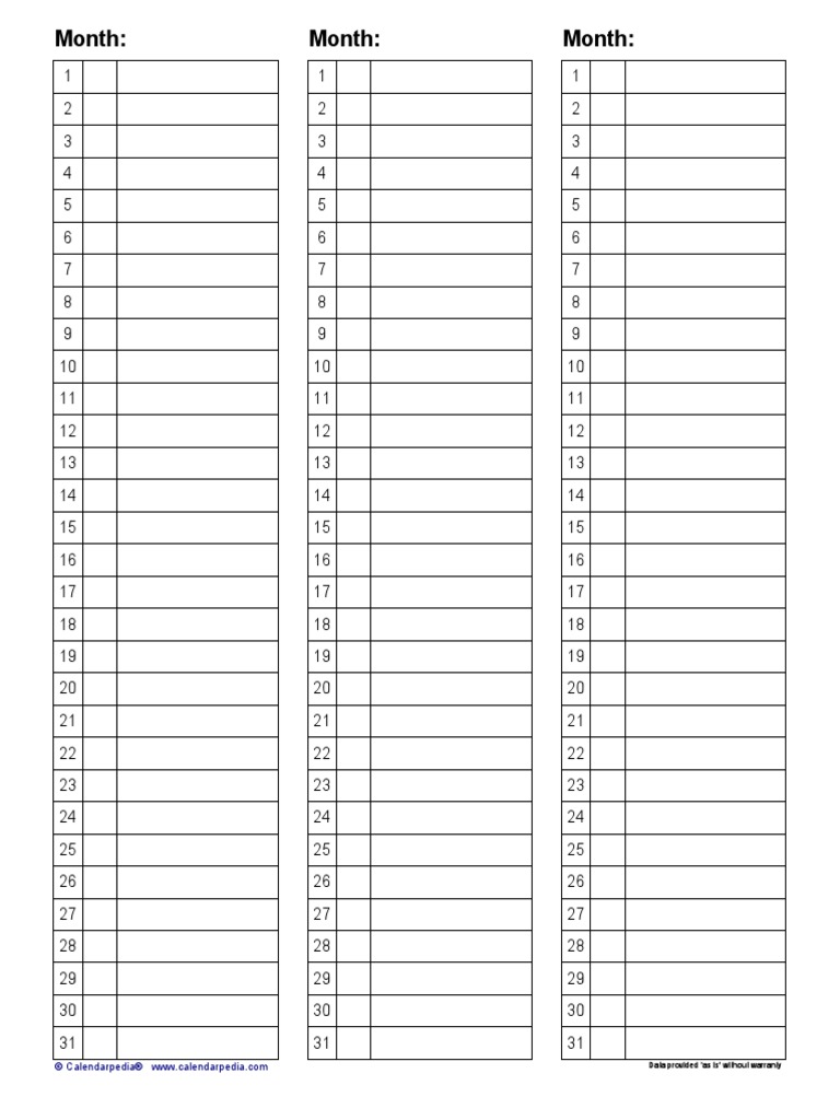 Blank 3 Month Calendar