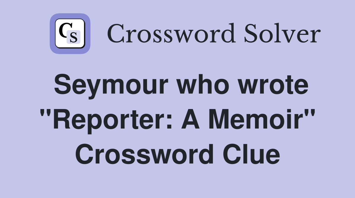 Seymour who wrote quot Reporter: A Memoir quot Crossword Clue Answers