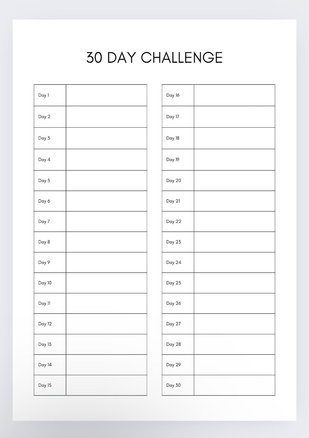 Printable 30 Day Challenge Blank Templates Printables Hub