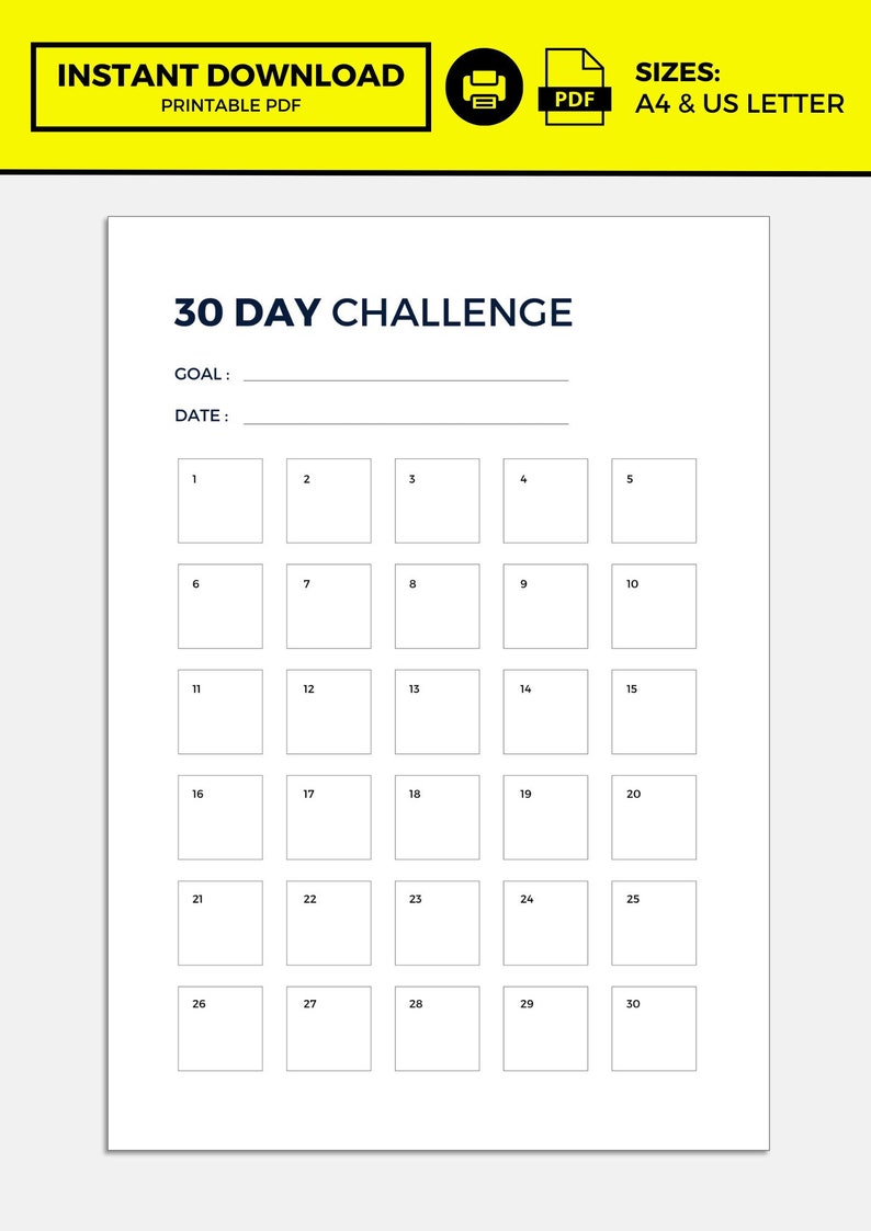 30 Day Challenge Tracker Template Letter A4 Planner Insert Etsy 30