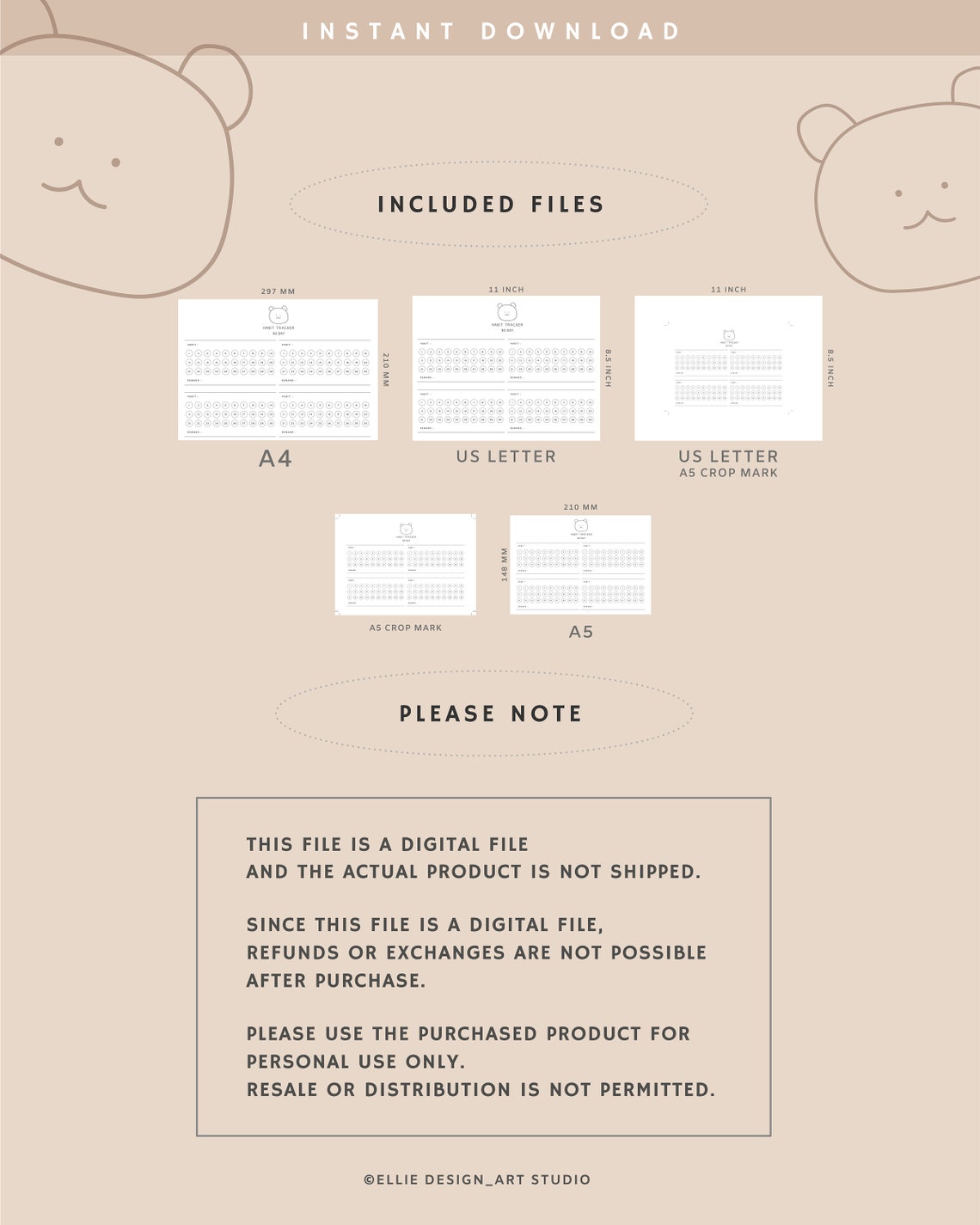 30 Day Habit Tracker Printable PDF // Downloadable A4 Size Goal