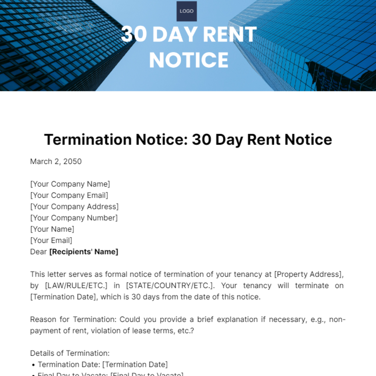 LEASE TERMINATION 30 Day Notice to Vacate Doc Template pdfFiller