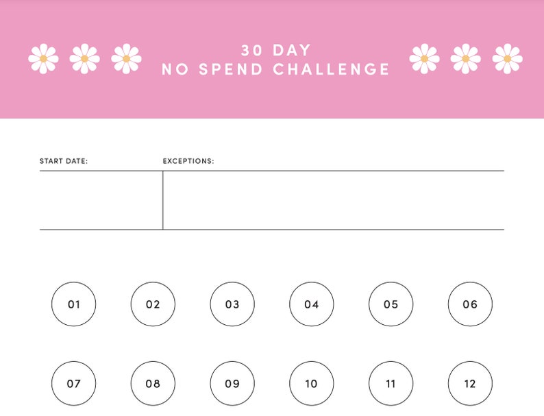 No Spend Challenge 1 Month No Spending Challenge Printable No Spend