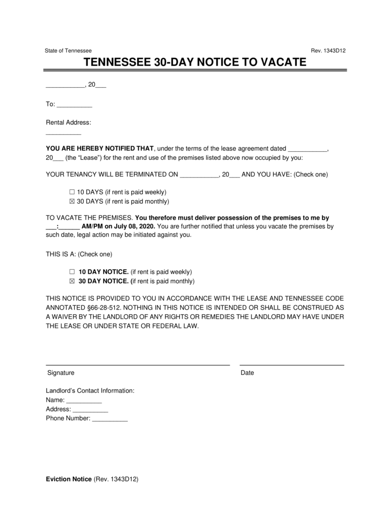 30 Day Notice To Vacate Tennessee Template