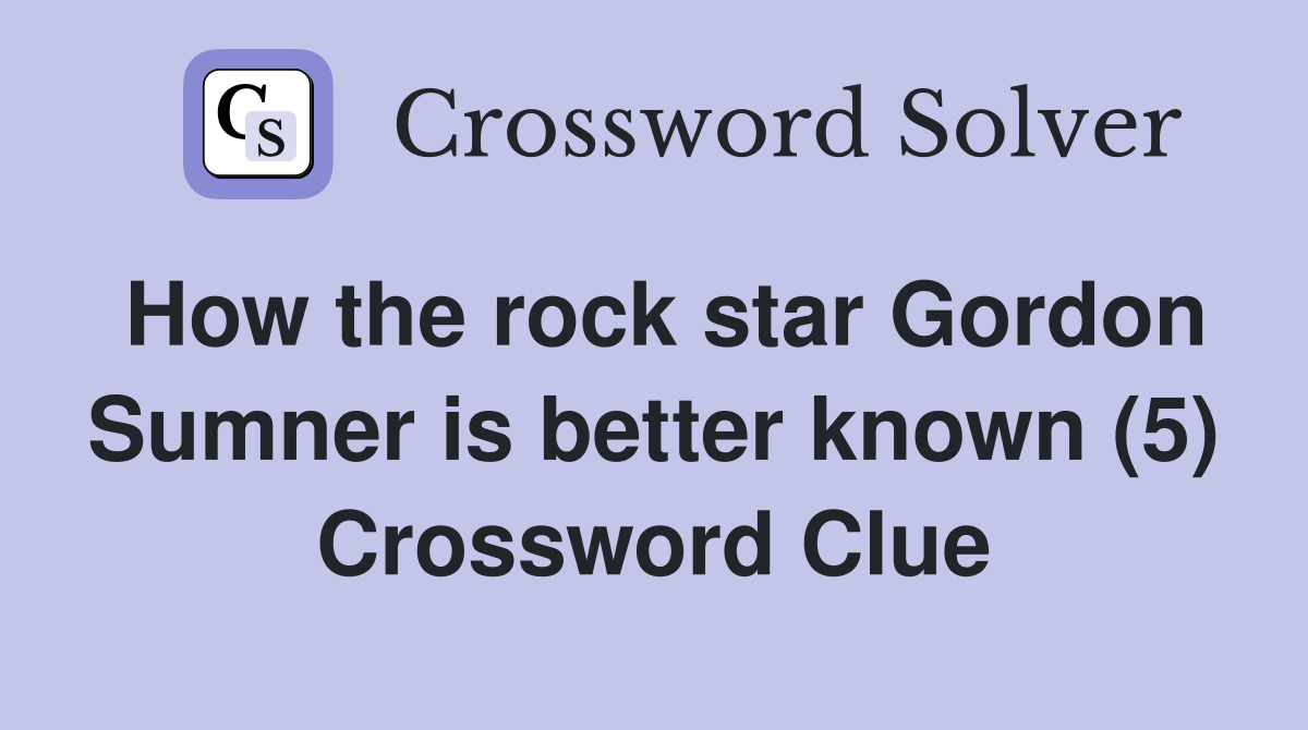 How the rock star Gordon Sumner is better known (5) Crossword Clue