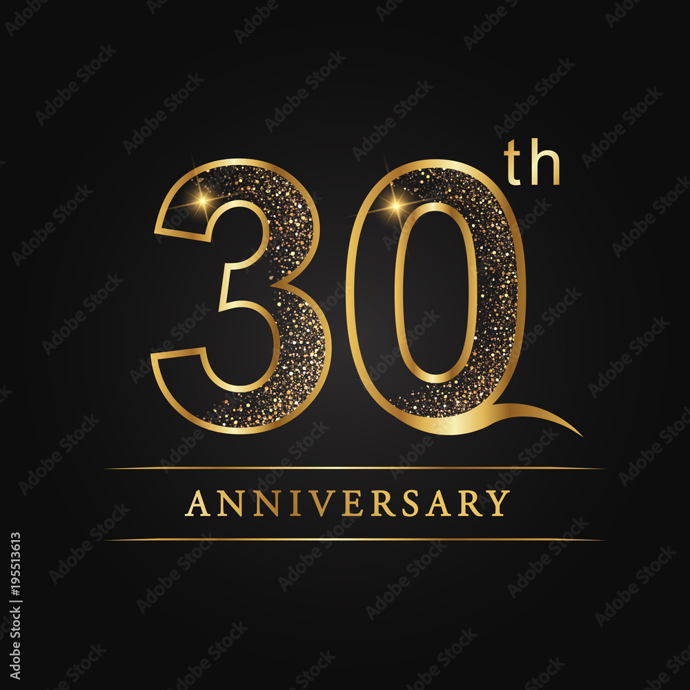 30th anniversary golden logo thirtieth Years Badge with number thirty