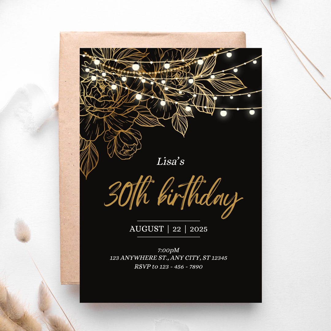 Free Luxury 30th Birthday Invitation Template to Edit Online