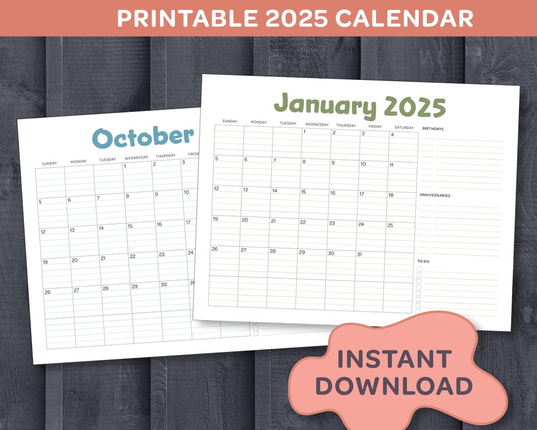 2025 Lined Monthly Calendar Printable 2025 Calendar 8 5x11