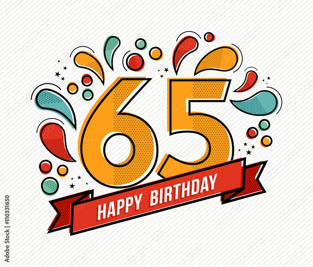 Colorful happy birthday number 65 flat line design Stock Vector Adobe