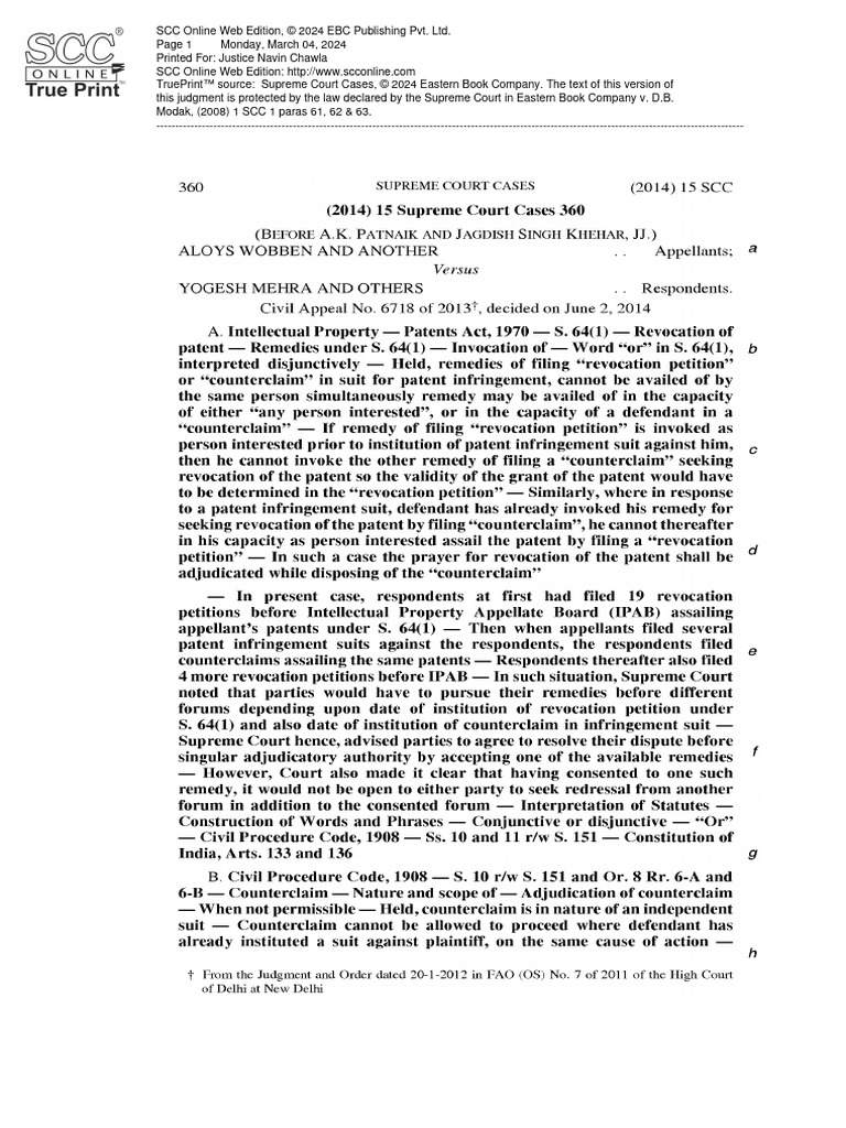 2014 Aloys Wobben v Yogesh Mehra (2014) 15 SCC 360 PDF Supreme