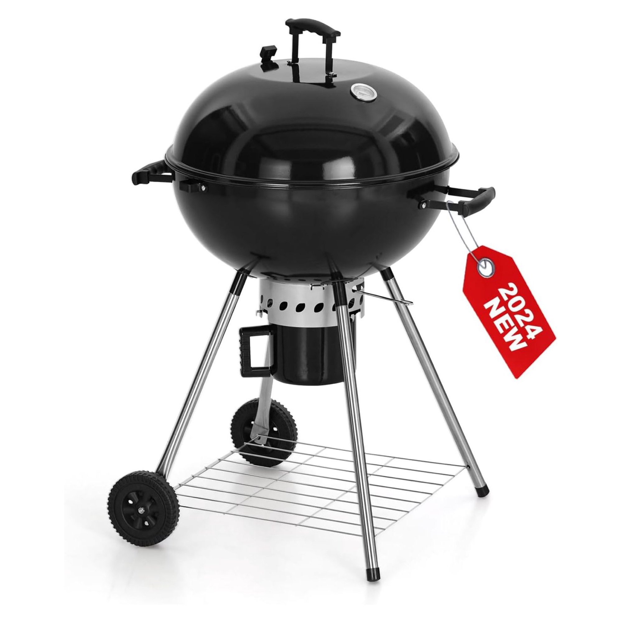 cMinc 22 inch Kettle Charcoal BBQ Grill with Wheels Portable Charcoal