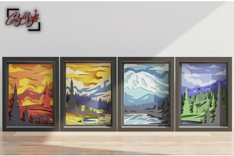 Four Seasons Landscape Shadow Box SVG 3D Layered Mountain Papercut