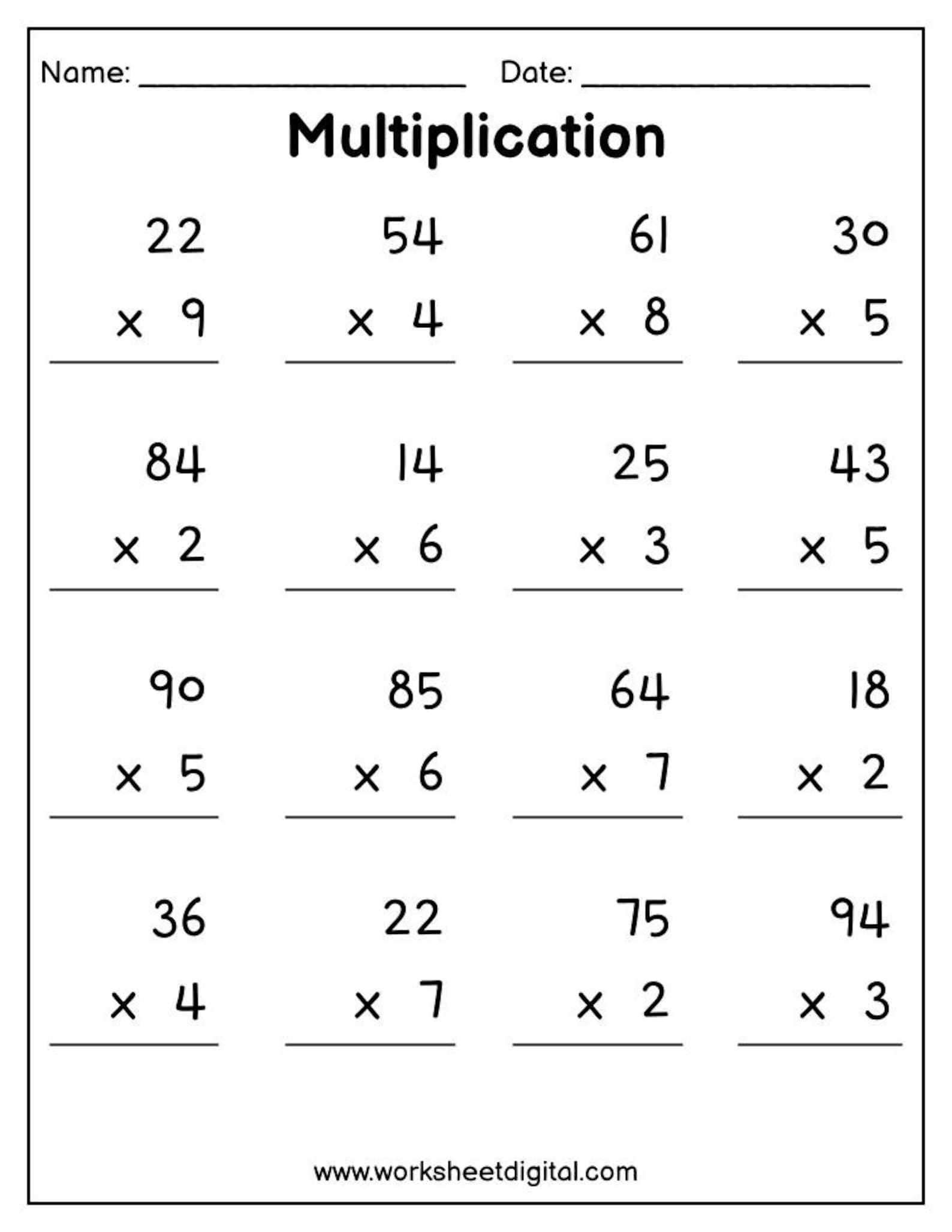 Free Printable 6th Grade 2 Ditit Multiplication Math Worksheets Math