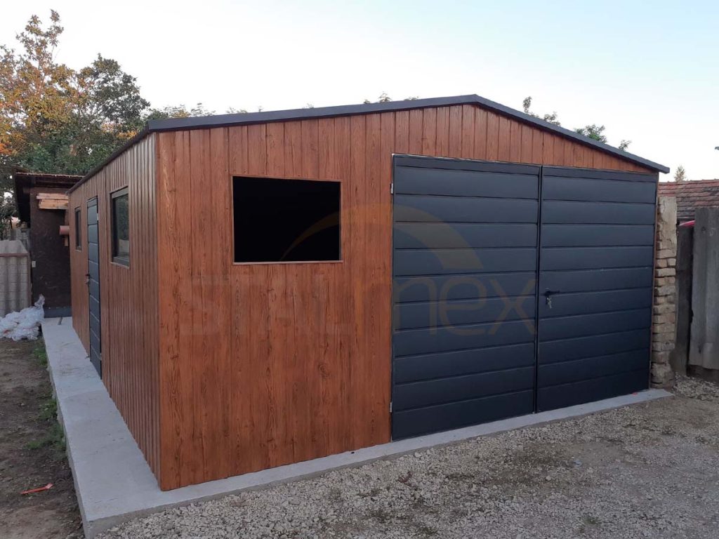 Skardinis garažas 3x5 standartinis šlaitas į galą dvivėriai vartai
